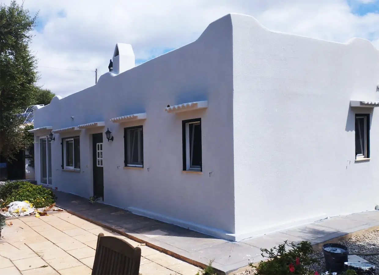 Aplicación de sistema SATE y acabado en corcho proyectado de textura ELASTICOVER FINE.