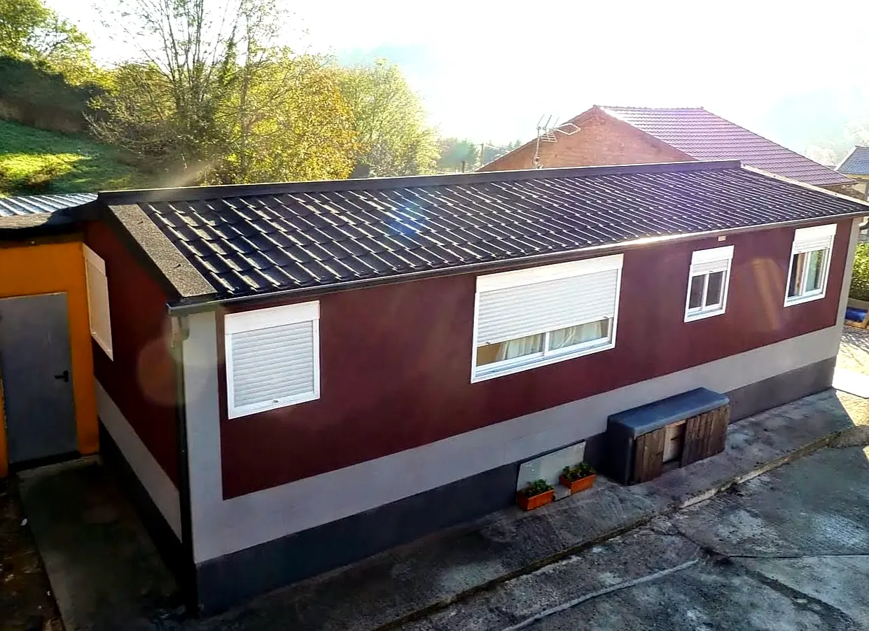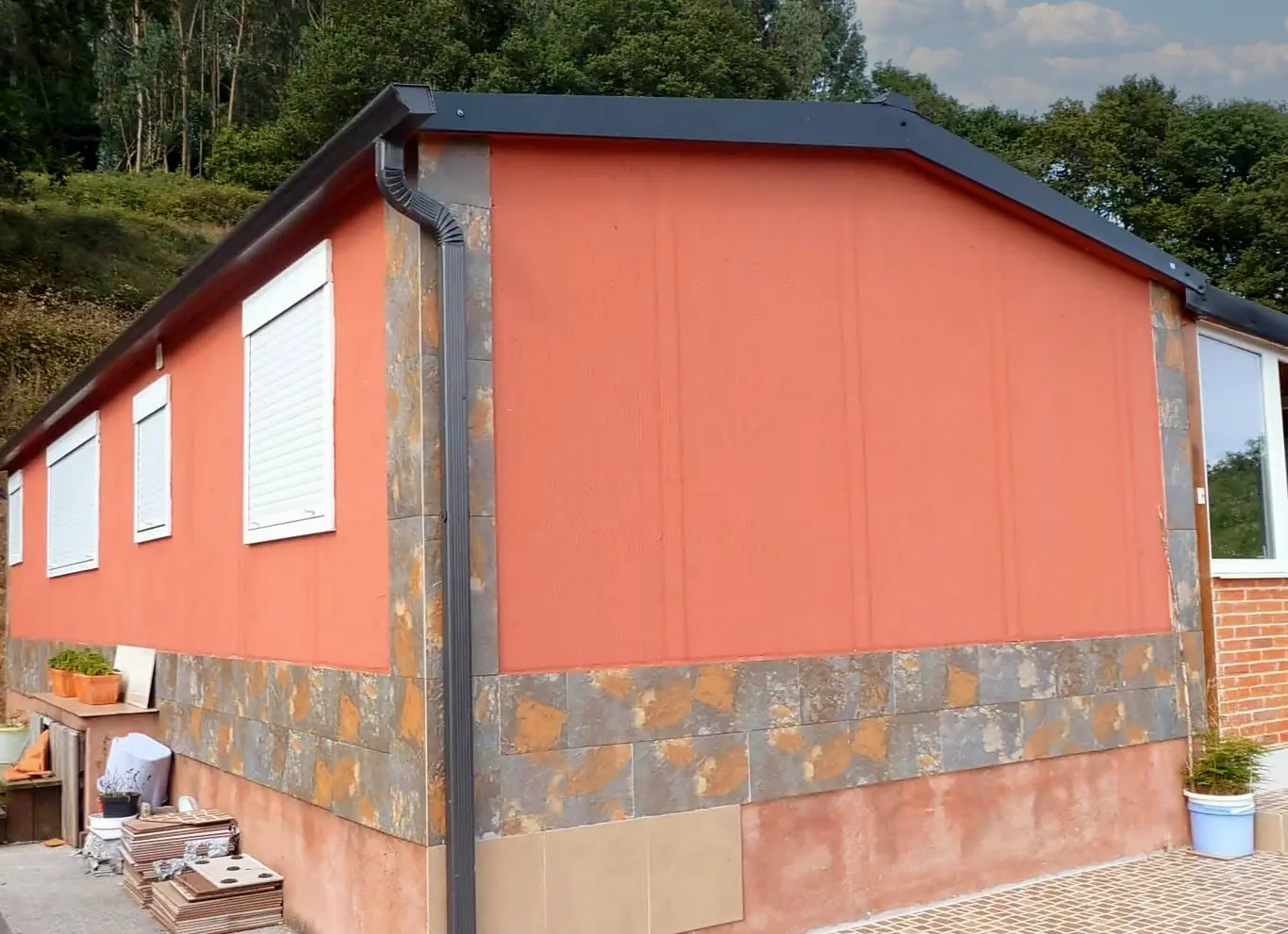Aplicación de corcho proyectado ELASTICOVER TECH en bungalows (Bizkaia).