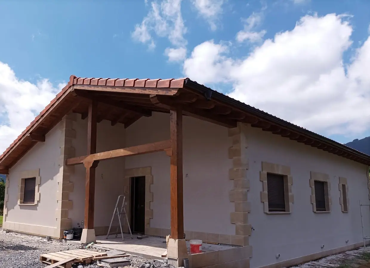 Sistema SATE Aquapanel acabado en corcho proyectado Elasticover TECH en OROZKO (Bizkaia).