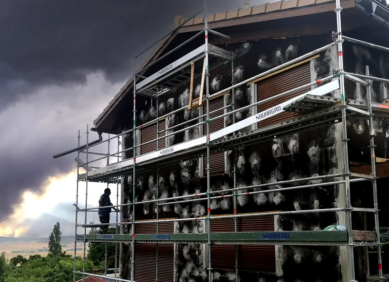 Preparativos para la colocación del sistema SATE aislamiento térmico totalmente natural y transpirable.