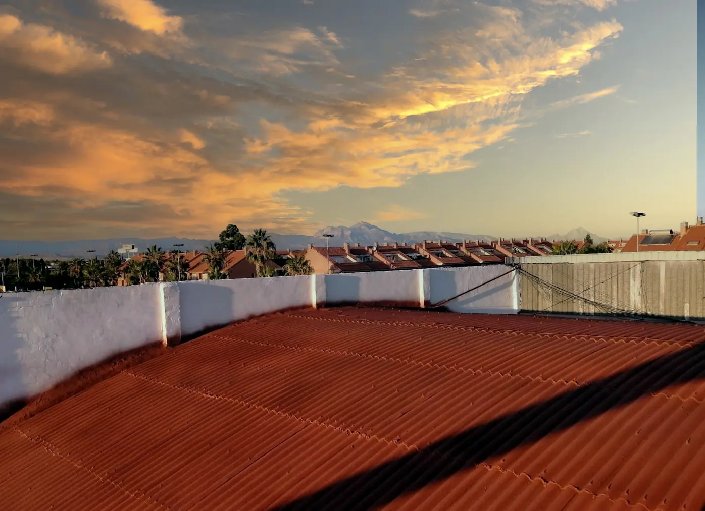 Después de la aplicación de corcho proyectado Elasticover Tech. Corrector térmico sobre cubierta en Alicante.