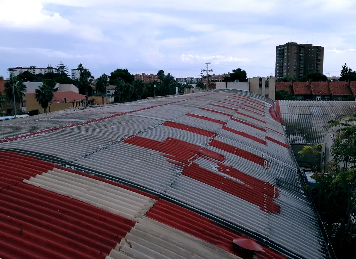 Antes de la aplicación de corcho proyectado Elasticover Tech. Corrector térmico sobre cubierta en Alicante.