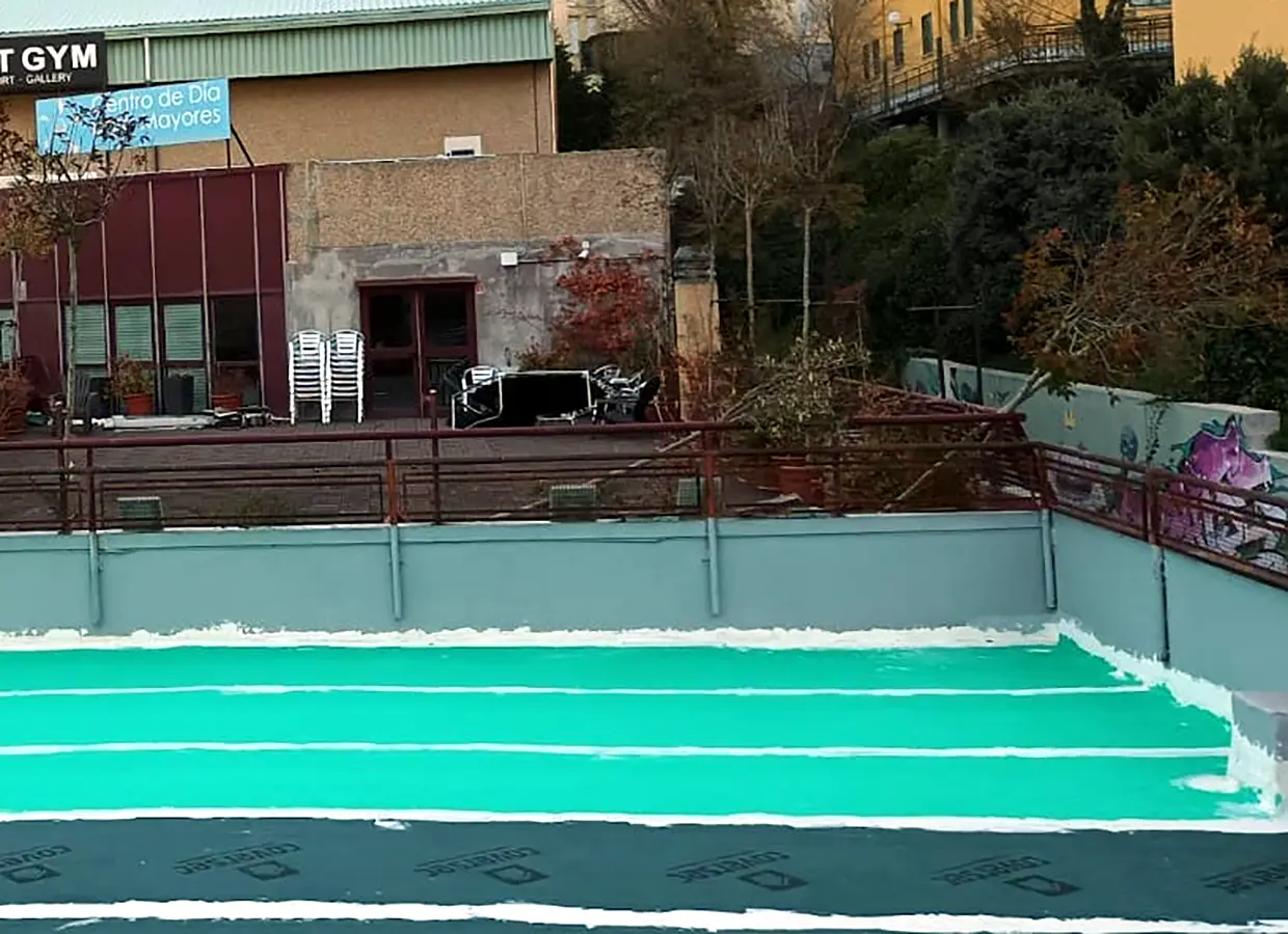 Aplicación de corcho proyectado ELASTICOVER TECH. Obra realizada en Ibarra (Gipuzkoa).